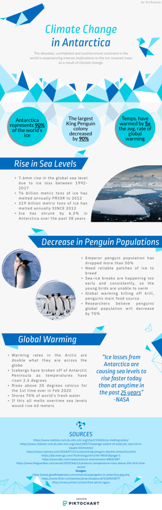 This change in temperature has caused the wildlife in Antarctica to dramatically decrease. This means the penguin population. More specifically, the emperor penguin colony in Halley Bay lost more than 10,000 chicks in 2016 and today has not recovered.